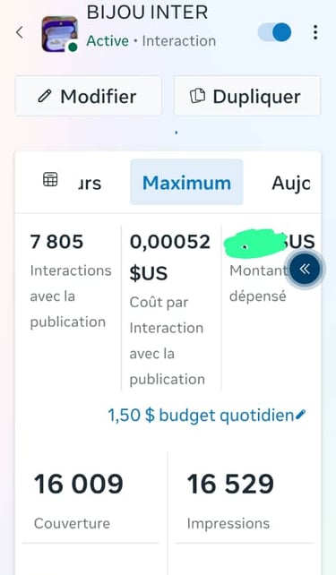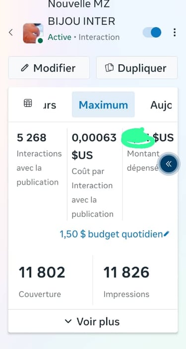 - Aussi avons mis la page Facebook de Koum Boutique sous sponsoring pour augmenter la visibilité et faire découvrir la marque à un plus large public cible